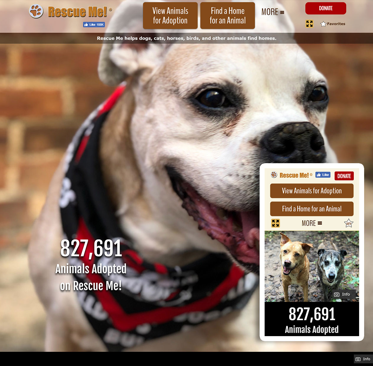 High-traffic animal rescue website on which people and rescue shelters can both post as well as search for animals in need of adoption. Working together with the organization owner, I re-vamped much of the website to modernise the design and make it mobile-friendly. I also updated most of the JavaScript code and functionality, added many new features and integrated the front-end with the back-end infrastructure under the direction of the organization owner.