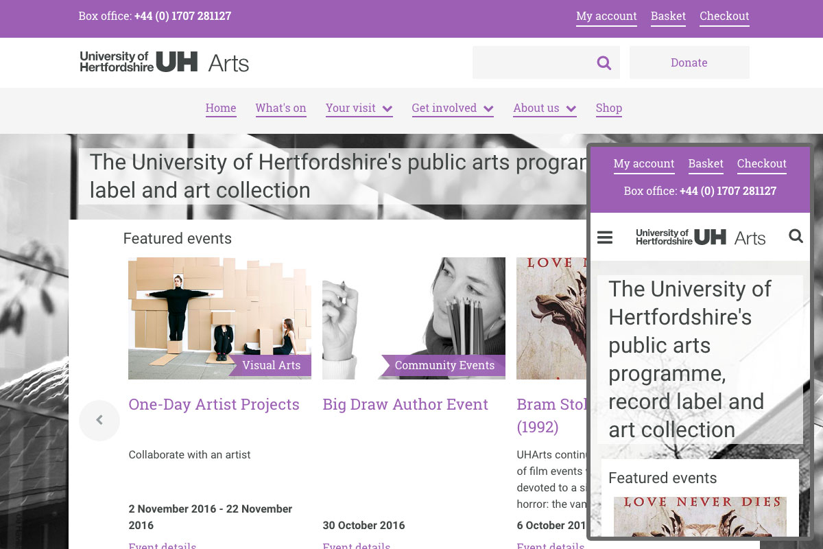 Events website integrated with search and filtering functionality and event booking through Spektrix.