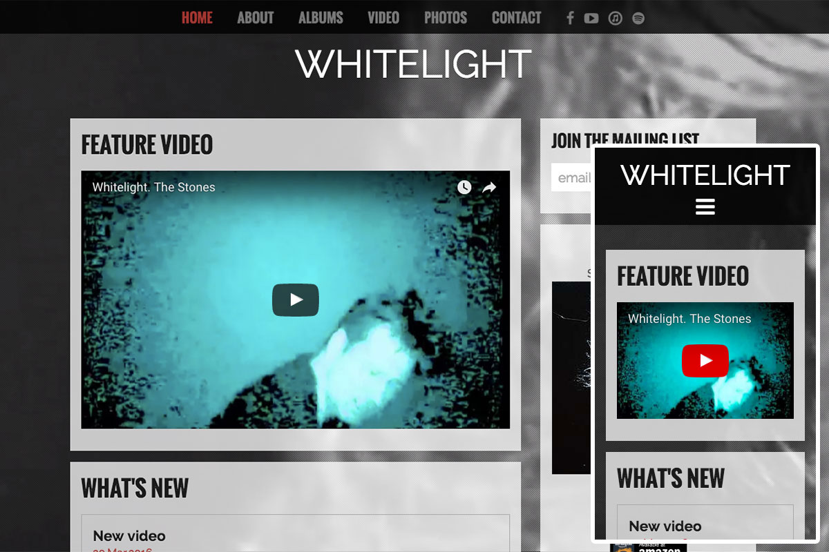 Custom website built for a musician which features newsletter signup, latest news, discography, track listing and audio clips, videos and photo gallery.